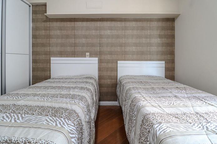 CAMAS, ROUPAS DE CAMA E BANHO: O apartamento possui 02 camas QUEEN, 02 camas de solteiro, 02 camas solteiro (dependência).