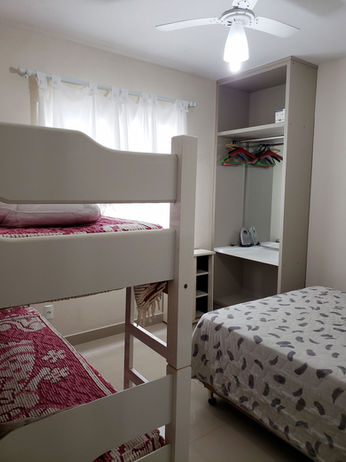 CAMAS, ROUPAS DE CAMA E BANHO: O apartamento possui 02 camas de casal, 02 camas de solteiro (beliche).
