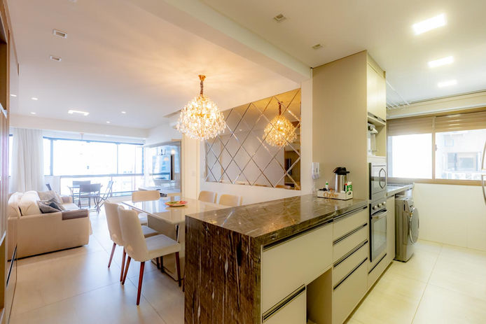 Sacada integrada e cozinha gourmet integrada